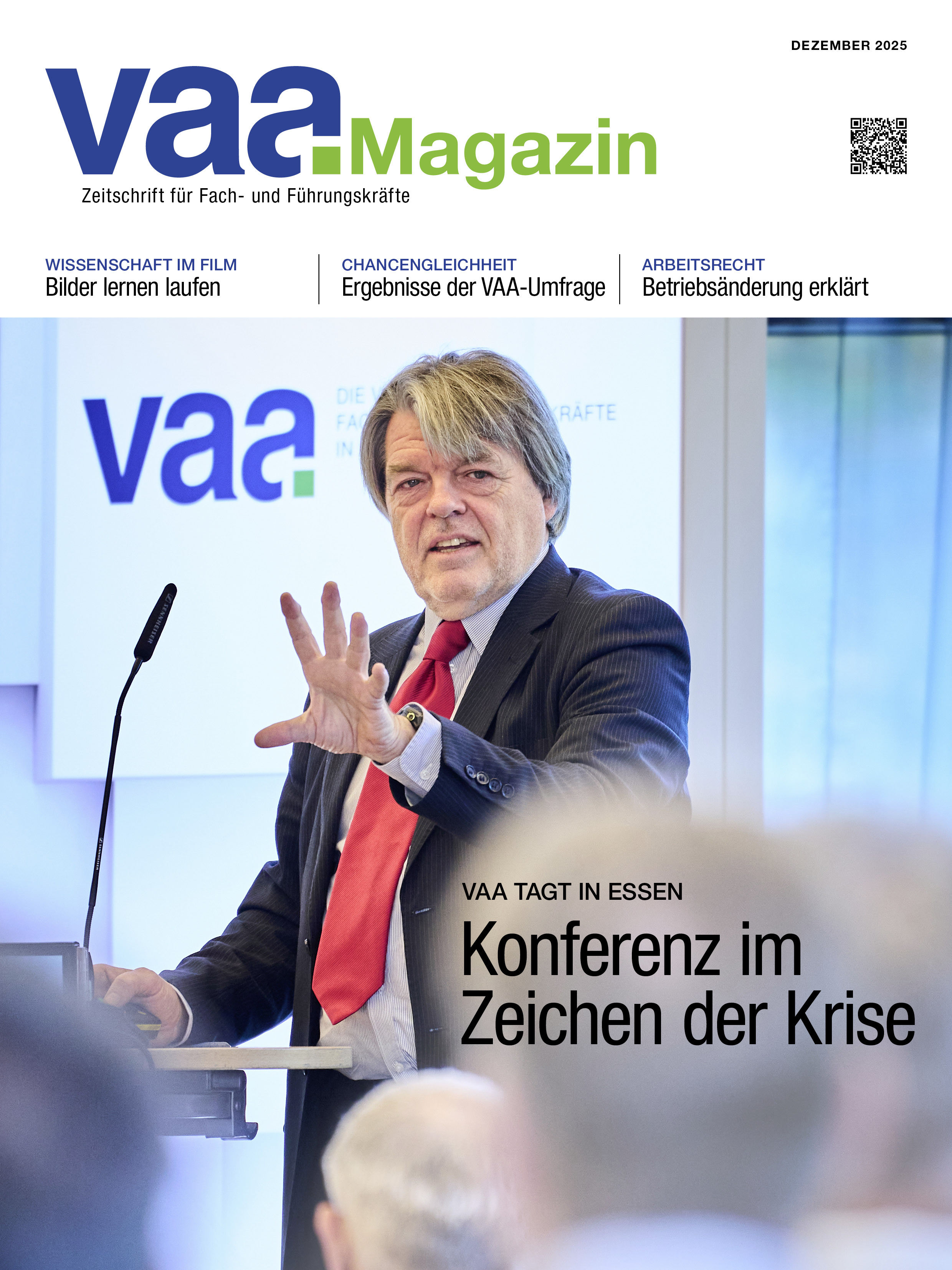 In der Rubrik VAA wird über die Jahreskonferenz in Krisenzeiten berichtet. Außerdem werden die Preisträgerin und die Preisträger des Exzellenzpreises der VAA Stiftung vorgestellt, ebenso die Ergebnisse der VAA-Umfrage zur Chancengleichheit. Außerdem gibt es Artikel zur Aufsichtsrätetagung in Aachen und zur Sprecherausschusskonferenz in Köln.