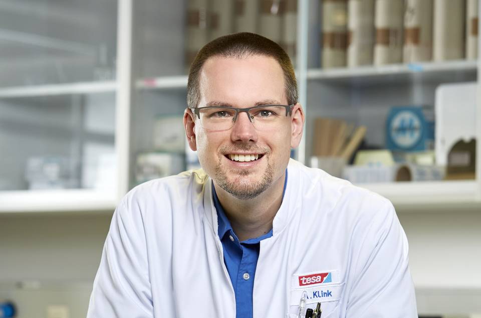 Frisch aus dem Studium hat der Bioverfahrenstechniker 2011 bei Tesa angefangen – als Produktentwickler doppelseitiger Schaumklebebänder für die Flexodruckindustrie. „Dabei habe ich über Druckereitechnik nie etwas im Studium gelernt“, erinnert sich Klink. „Nur Excel, PowerPoint und grundlegende analytische Fähigkeiten konnte ich aus meinem Studium einbringen – und dann sollte ich bereits die Prozesse beziehungsweise Methoden auf den Prüfstand stellen!“ Seine Kollegen waren alle erfahrene Entwickler und stellenweise sogar Druckingenieure, er dagegen nicht „vom Fach“. Nach einem halben Jahr learning on the job hatte Arne Klink es aber drauf. „Prozesse standen dabei weniger im Fokus, die Arbeit als Produktentwickler und später als Projektleiter wurde von der Pike auf gelernt.“